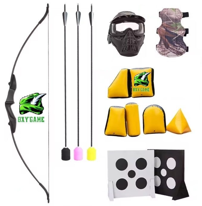 Oublie les flèches acérées ! Ici, on utilise des flèches spéciales avec un gros embout en mousse.